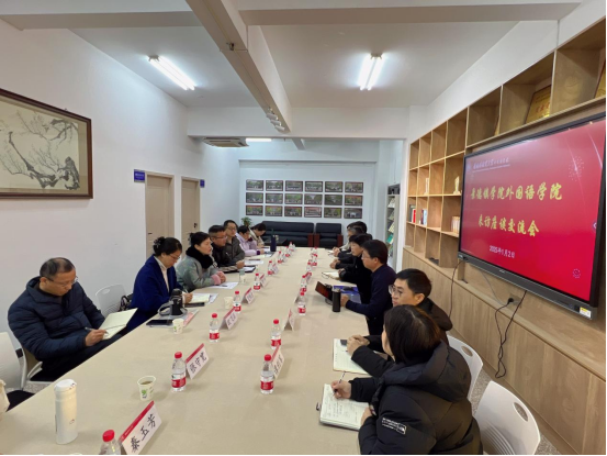 为进一步做好我院本科教育教学审核评估工作,2025年1月2日,在外国语学院院长吴芹带队前往景德镇陶瓷大学外国语学院考察本科教学审核评估工作。副书记黄华、副院长夏雅君、审核评估各组组长参加调研。